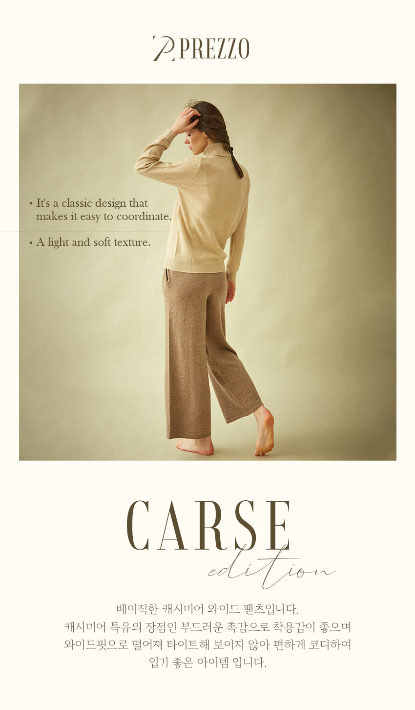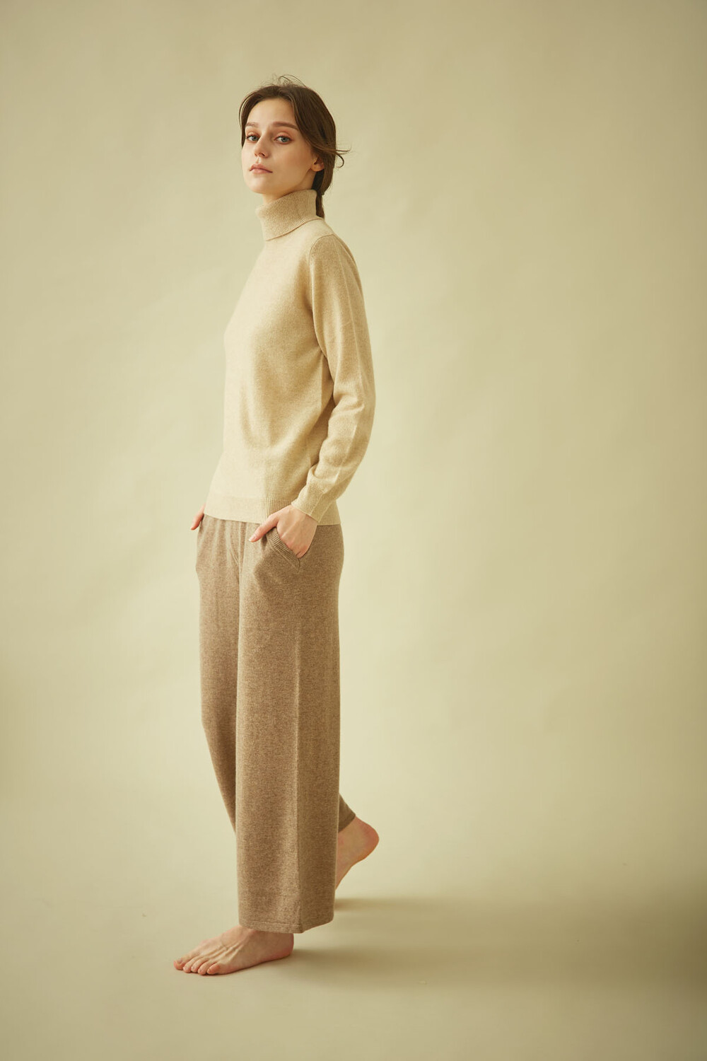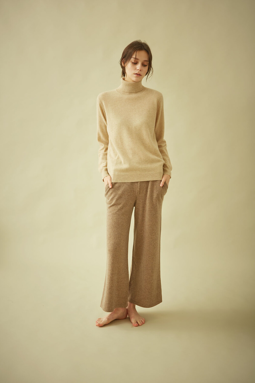 캐시미어 소재의 와이드 팬츠로 포근한 촉감과 뛰어난 보온성을 자랑합니다.