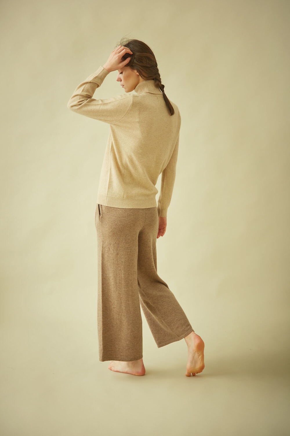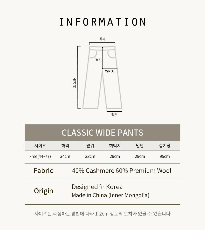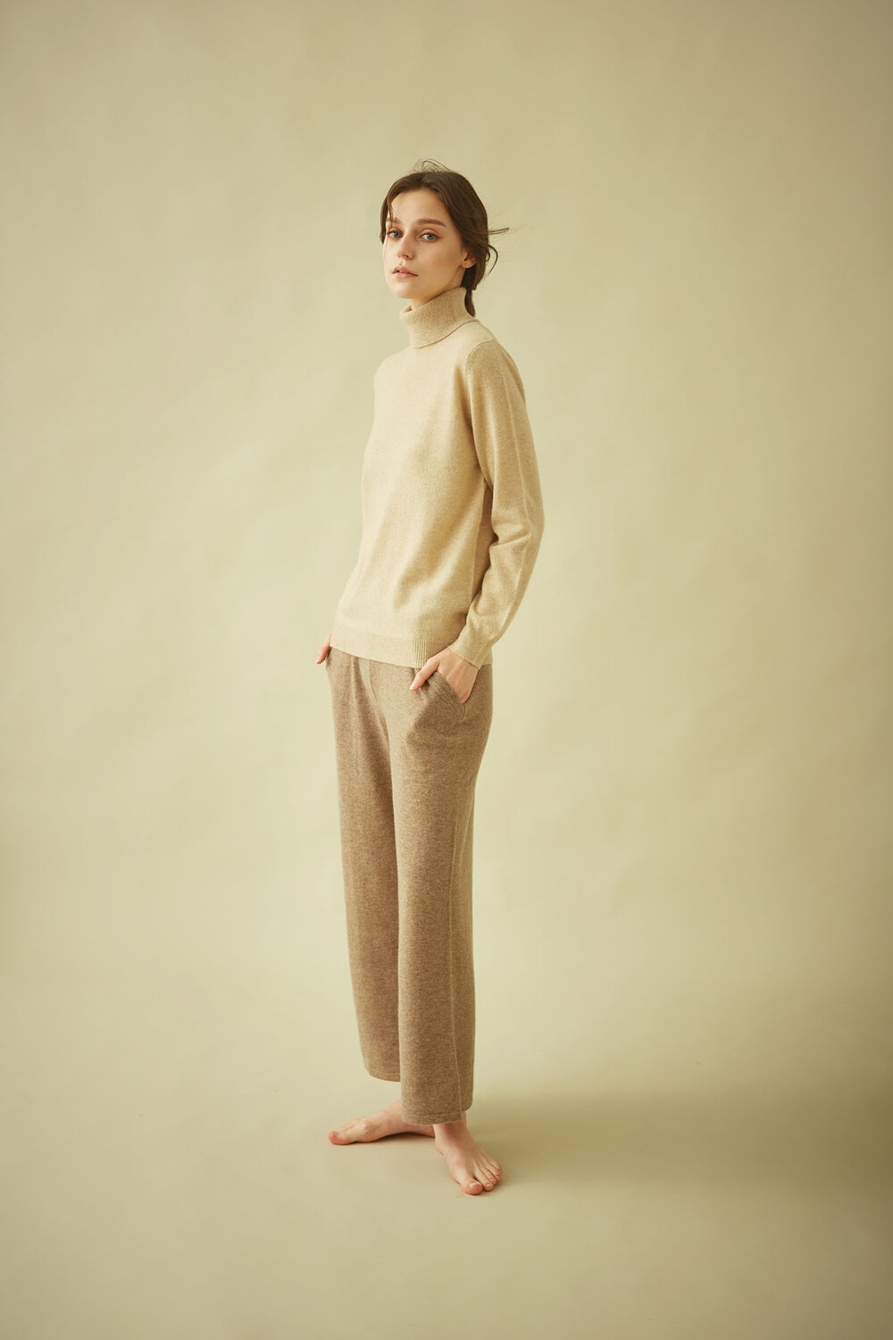 캐시미어 소재의 와이드 팬츠로 포근한 촉감과 뛰어난 보온성을 자랑합니다.
