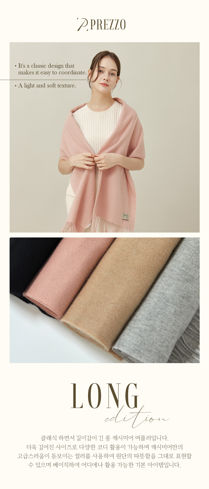[PREZZO]프레조 100% 캐시미어 클래식 롱 머플러 LONG (4color)