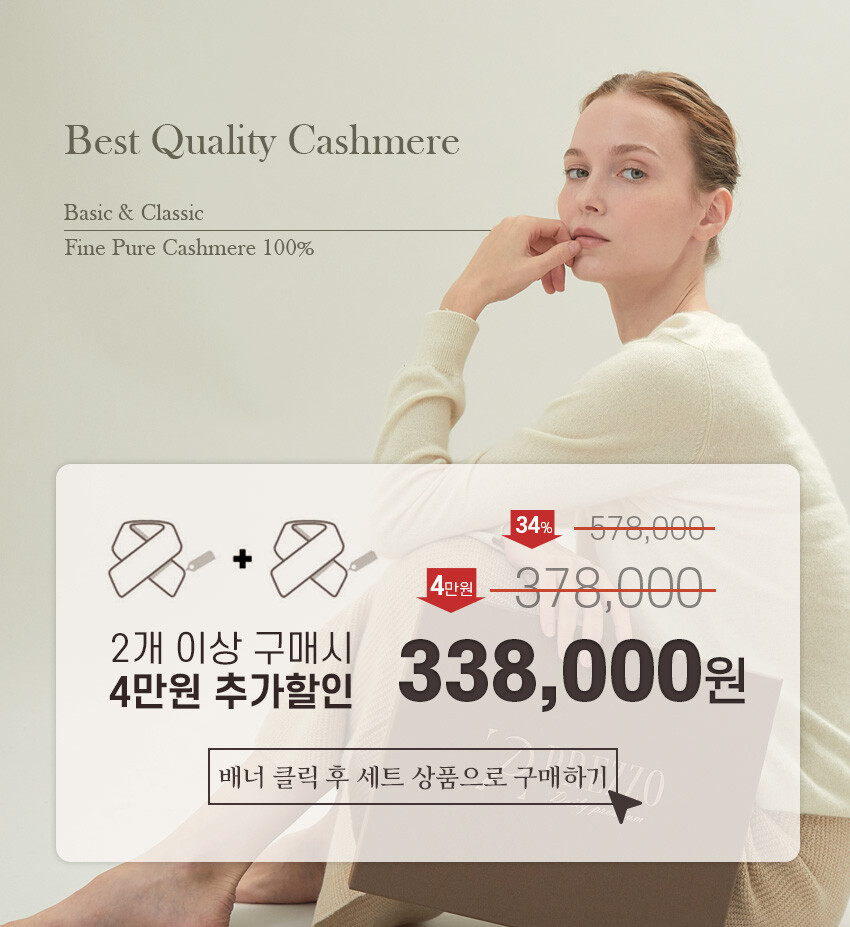 PREZZO Pure Cashmere Muffler Collection의 INVERNO Edition입니다. 100% 캐시미어로 제작되었으며 두께감과 더불어 포근한 촉감과 뛰어난 보온성을 선사합니다.캐시미어 중 가장 부드럽고 광택이 뛰어난 최고의 원사를 사용하였으며 특히 감각적이고 독특한 패턴을 더해 경험해 보지 못했던 최고의 캐시미어 머플러를 만나 보실 수 있습니다. 40% 할인 가격에 2개 이상 커플 세트 구매 시 20,000원 추가 할인 가격입니다