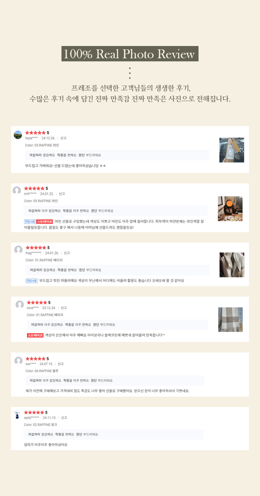100% 캐시미어 소재로 가볍고 포근한 촉감과 뛰어난 보온성을 자랑하며, 가을 겨울 일상에서 부담 없이 즐기실 수 있습니다.